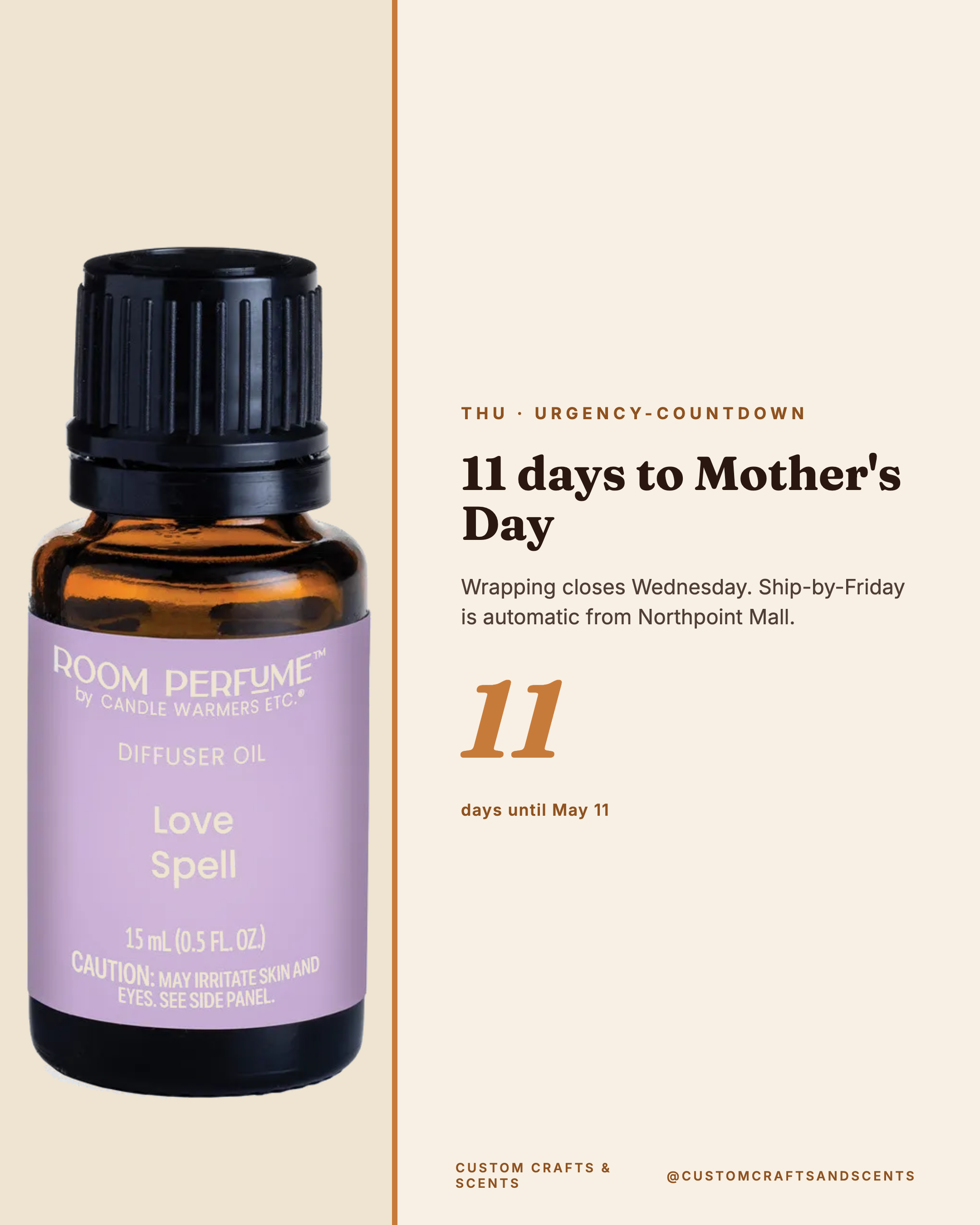 Wrapping closes Wednesday. Ship-by-Friday is automatic from Northpoint Mall.